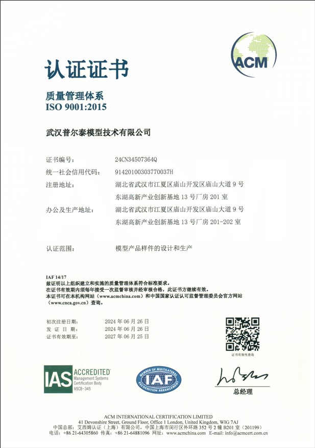 等线微软雅黑近期,武汉普尔泰模型技术有限公司顺利通过质...